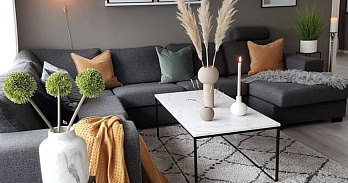 - В тональности: в цветовой гамме придерживайтесь строгих оттенков таких, как серый, белый, черный, бежевый, коричневый, терракотовый. Яркие акценты оставьте для элементов декора и мебели.